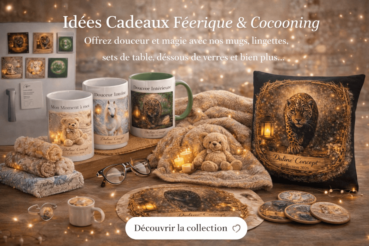 Aujourd’hui, Daline’Concept est devenue un concept store féerique, mêlant créations artisanales, objets décoratifs soigneusement sélectionnés et idées cadeaux pleines de magie.