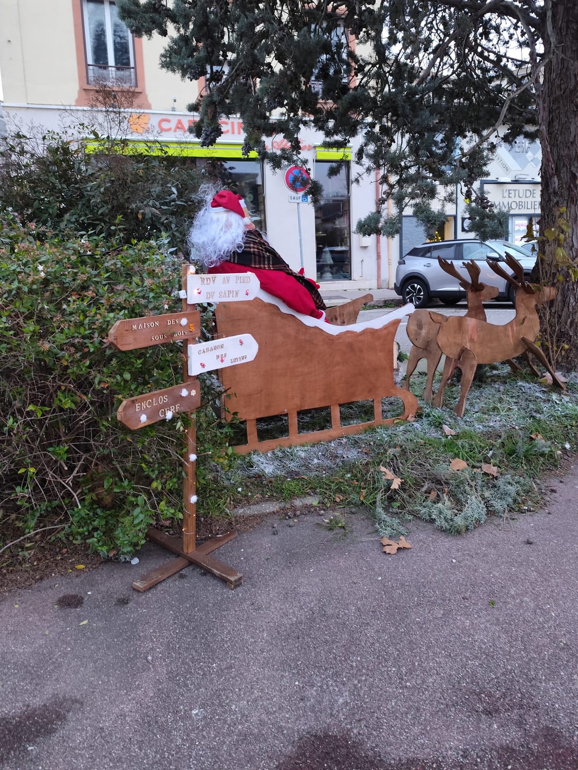 Panneau d'accueil: entièrement réalisé avec du don de bois, il peut accueillir des fleurs devant